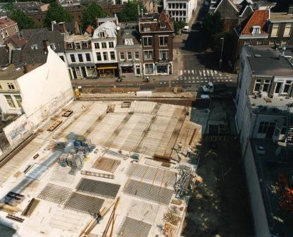 Bouwplaats Hof van Sint Jan met zicht op de Voorstraat, 1999 (collectie Het Utrechts Archief)